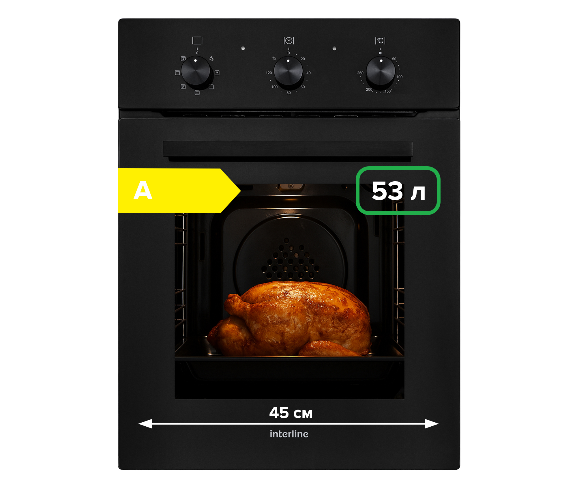 | Особливості | Обʼєм 53 літри — ідеально для будь яких страв! Компактний розмір духової шафи з великим обʼємом камери дозволяє готувати одночасно кілька страв або великі порції без зайвих турбот. Термостійка емаль ThermoClean+ + Steam: бездоганна чистота без зусиль Інноваційне покриття, що витримує високі температури і не боїться жиру чи нагару. Очищення Steam ефективно розм’якшує жир та наліт, полегшуючи процес очищення. Завдяки цим рішенням догляд за поверхнею камери стає простим і швидким, без потреби у тривалому терті чи агресивних засобах. Знімні дротові направляючі — 5 рівнів. Це не просто комфорт, це ваша кулінарна свобода. Можливість розміщення страв на різних рівнях оптимізує використання режимів нагріву, таких як гриль, конвекція або комбіновані режими, забезпечуючи рівномірне приготування. БЕЗПЕКА ПРИЛАДУ: ТЕПЛОІЗОЛЯЦІЯ. Використовуємо подвійну, фольговану теплоізоляцію. Не має запаху та не викликає подразнення шкіри. Екологічно чиста та безпечна! Система тангенційне охолодження — ефективний захист від перегріву. Забезпечує постійний потік повітря, який охолоджує дверцята та корпус духовки і робить її безпечною для дотику навіть під час інтенсивного використання. Додаткова система охолодження. Завдяки додатковим повітряним кишеням, які реалізовані у бокових стінках, забезпечується вільна циркуляція повітря між меблевим корпусом та приладом. Дверцята з подвійним склом забезпечують ефективне збереження тепла всередині духовки, одночасно залишаючи зовнішню поверхню прохолодною на дотик. Це сприяє енергоефективному приготуванню страв і знижує ризик випадкових опіків при контакті з дверцятами під час готування. Скляна панель керування. Гладка, зручна, легка у догляді — ідеальна для сучасної кухні. Відчуй комфорт управління та додавай нотку елегантності у свій простір. Повністю розбірні та змінні дверцята духової. Духові шафи Interline оснащені знімними та повністю розбірними дверцятами, що значно полегшує доступ до внутрішньої камери для очищення. Для чищення скла достатньо зняти фіксуючу планку у верхній частині дверцят, що дозволяє повністю розібрати конструкцію та забезпечити зручне обслуговування. Клас енергоспоживання А. Цей показник свідчить про економію Ваших коштів та раціональне відношення до навколишнього середовища. Потужність гриля 1200 Вт |