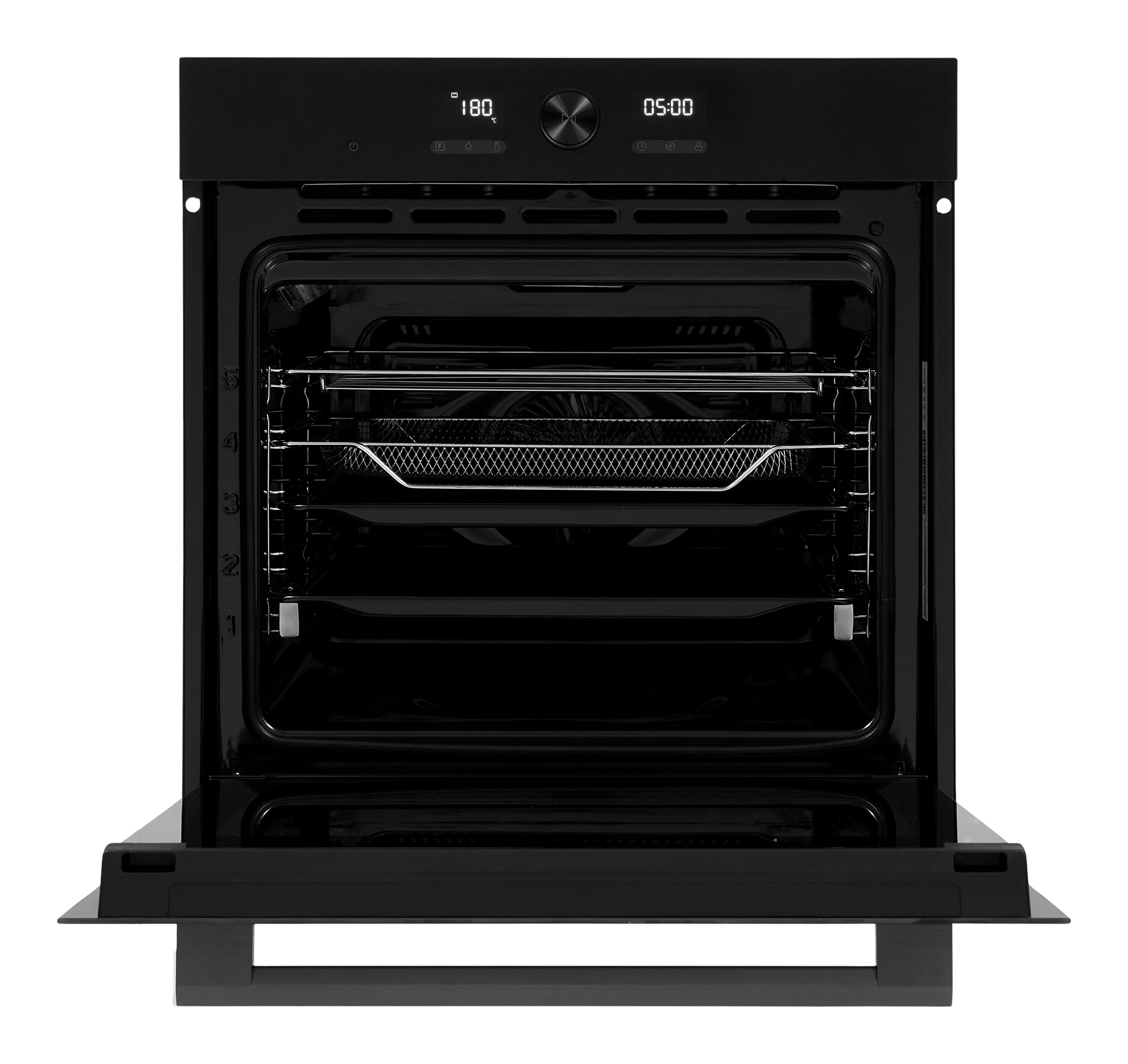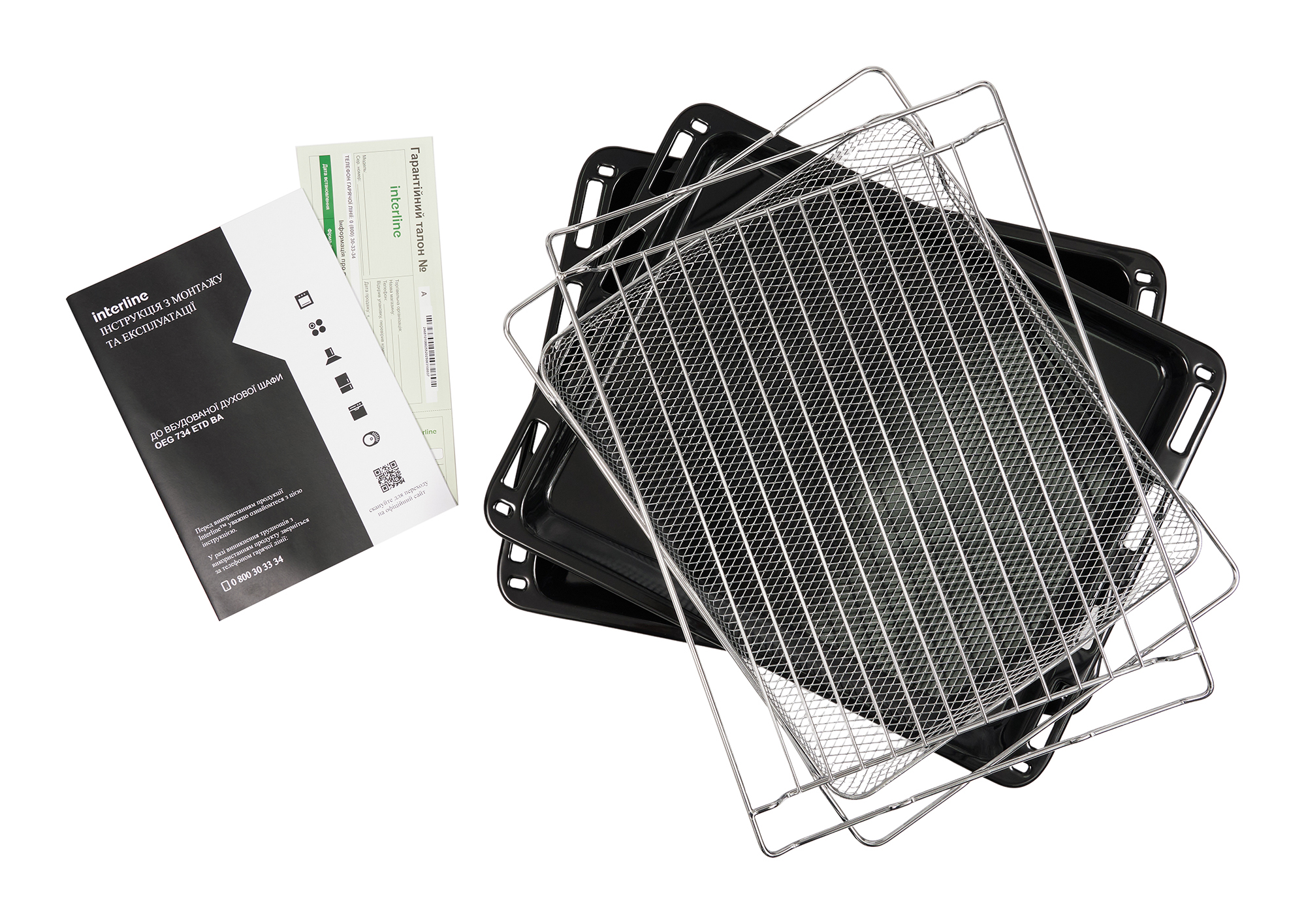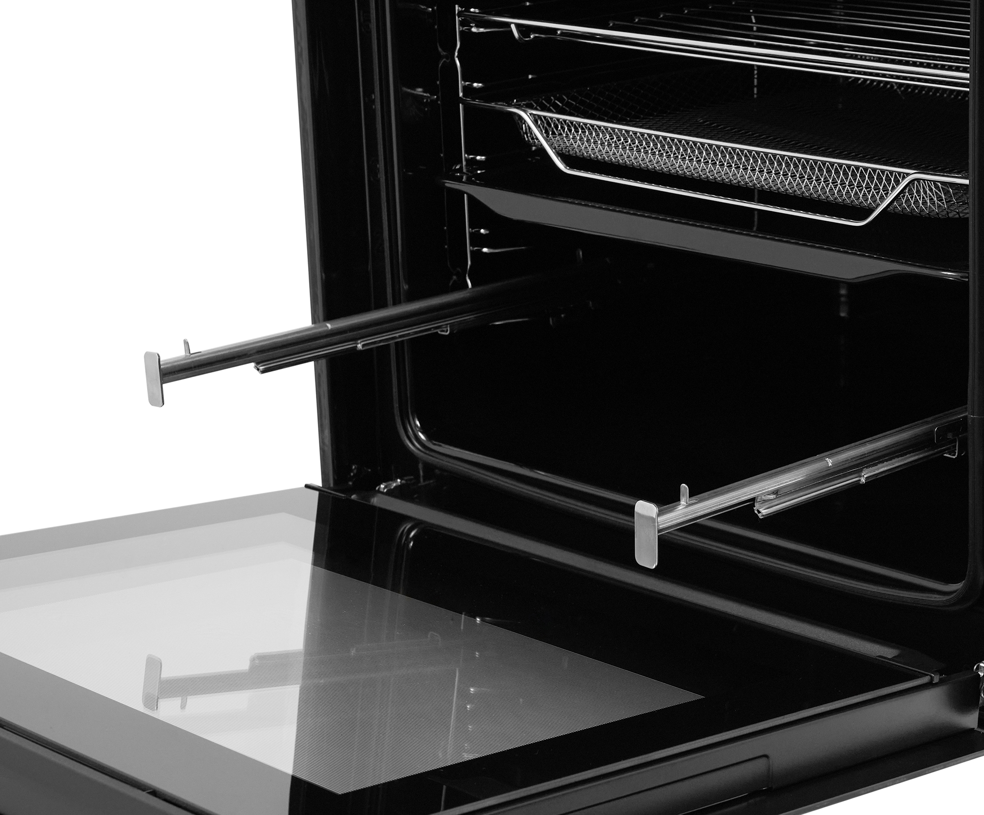 | Комплектація | Решітка для грилю: 1 Емальоване деко глибоке: 1 Емальоване деко мілке: 1 Кошик AirFry: 1 Телескопічні направляючі: 1 рівень 75% витягування, незнімні Інструкція Гарантійний талон |