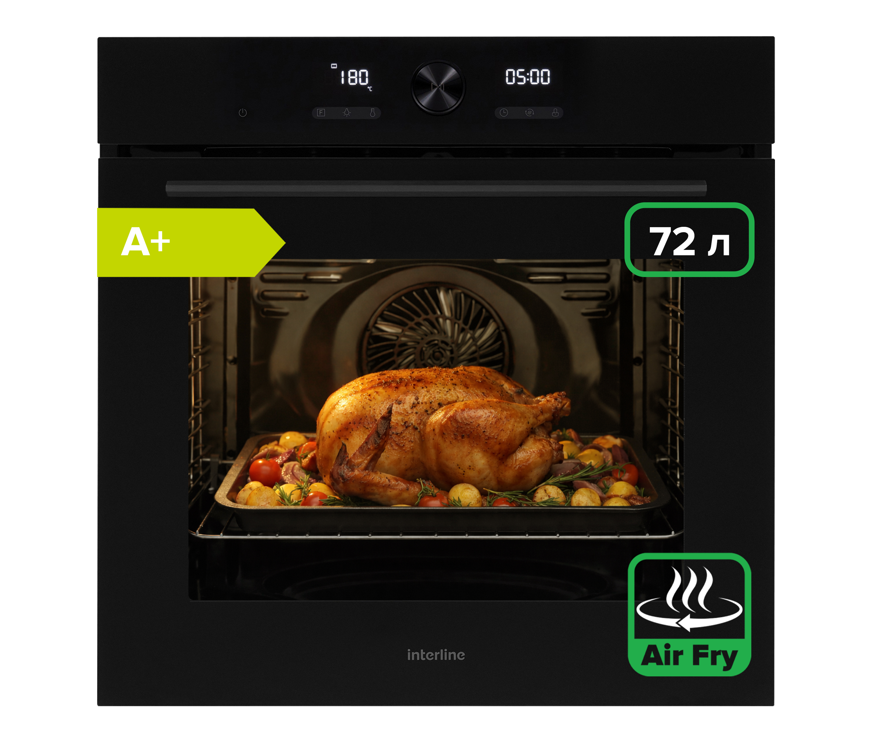 | Особливості | Об’єм 72 літри Більше простору для кулінарних експериментів Завдяки великому внутрішньому об’єму ви можете одночасно готувати кілька страв або великі порції. Ідеально підходить для родинних обідів та святкових вечерь. Оптимальний розподіл тепла в камері дозволяє ефективно використовувати енергію й час. Телескопічні направляючі Зручність і безпечність у кожному русі Дві пари телескопічних направляючих забезпечують плавне висування дека, дозволяючи легко перевіряти готовність страв, не ризикуючи обпектися. Вони стійкі до високих температур і полегшують догляд за камерою приготування. Функція AirFry Хрусткі страви без олії Інноваційний режим AirFry забезпечує швидку циркуляцію гарячого повітря, що утворює золотисту скоринку без зайвого жиру. Використовуйте спеціальний кошик AirFry для рівномірного результату — страви виходять ніжними всередині й хрусткими зовні. Широкий температурний діапазон — 30°C до 250°C Повний контроль над кожною стравою Ви можете готувати делікатні десерти, ферментувати тісто або смажити м’ясо до хрусткої скоринки. Діапазон температур забезпечує універсальність для будь-яких кулінарних ідей. Енергоефективність класу A+ Більше економії — менше витрат Завдяки високому класу енергоефективності духовка споживає менше електроенергії, зберігаючи потужність і продуктивність. Ефективне теплоізолювання та інтелектуальне керування допомагають зменшити витрати електрики на кожному циклі приготування. Електронна панель керування Сенсорні кнопки + поворотна ручка керування Інтуїтивне користування та точність налаштувань Безпека та система охолодження Захист для вас і меблів Охолоджувальний вентилятор автоматично працює навіть після вимкнення духовки, доки корпус не охолоне до безпечної температури. Це запобігає перегріванню меблів та продовжує термін служби приладу. |
