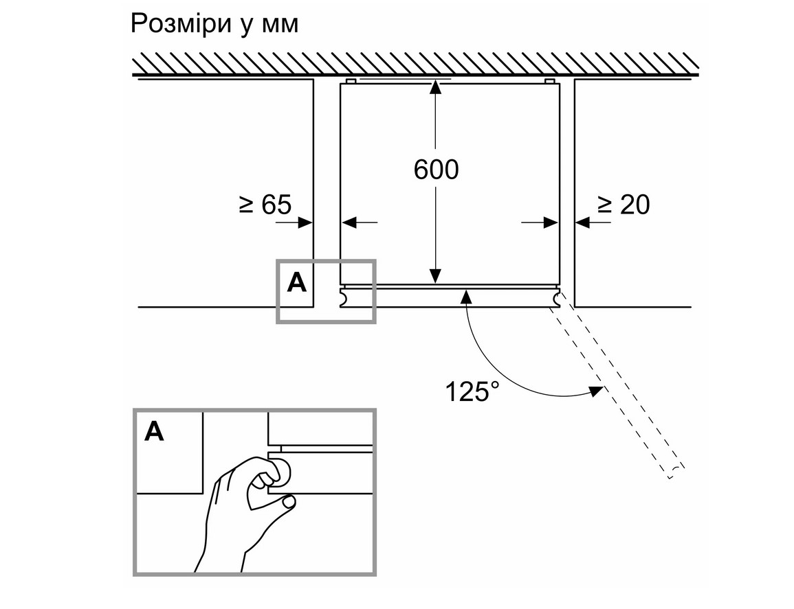 | Ширина вбудовування, мм | 600 |